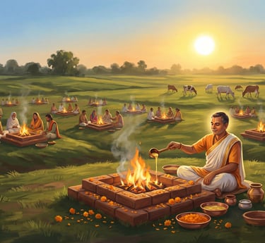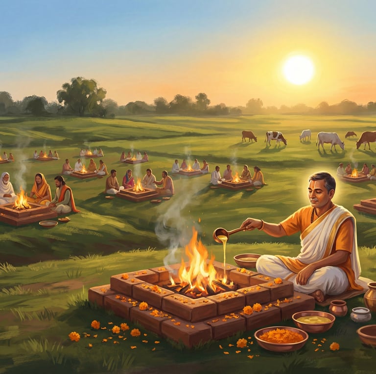By taking part in this hawan, your family offers ahuti not only for your own home, business, and children’s future, but also for gau‑seva, go‑raksha and the successful completion of this sacred dham.
